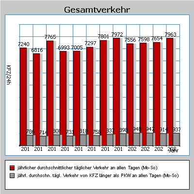 DTV Gesamtverkehr durchschnittlicher täglicher Verkehr an allen Tagen (Mo - So)